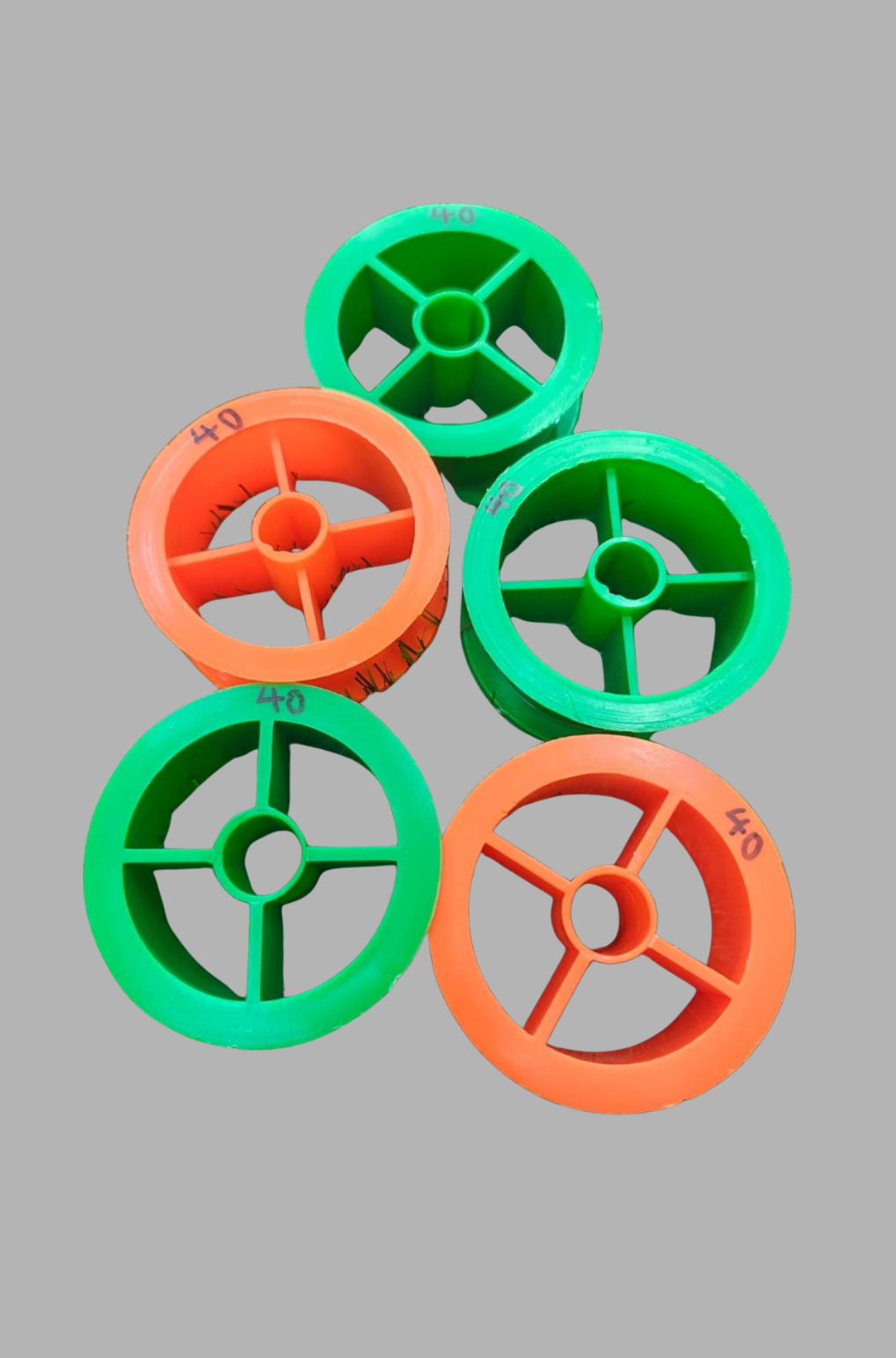 Each ring features a central hub with support spokes, allowing smooth rotation when winding or unwinding line. The compact design makes them easy to store in your tackle box or fishing bag.