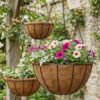 Eco-friendly coir hanging baskets with natural fiber liners, perfect for decorative planting and healthy plant growth.