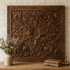 Elegant hand-carved wooden wall panel with intricate floral design, ideal for premium home and office décor.